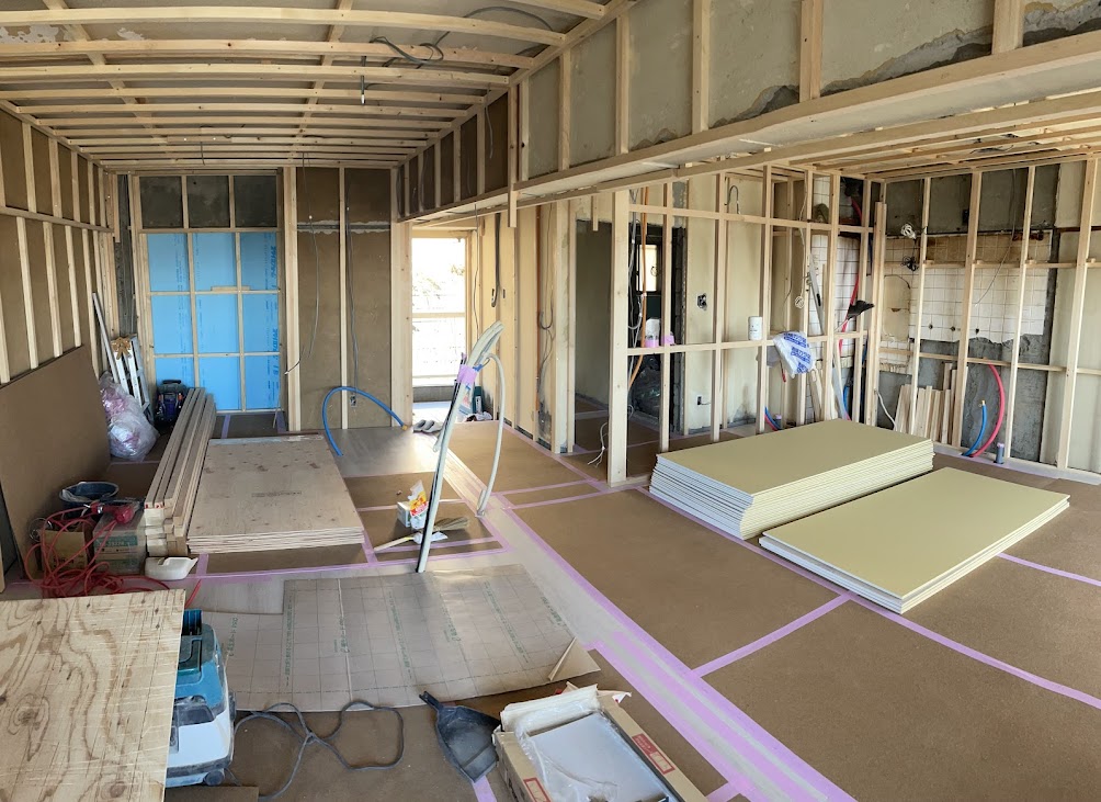 内部の壁も、野縁を使用し、石膏ボードを貼りました。